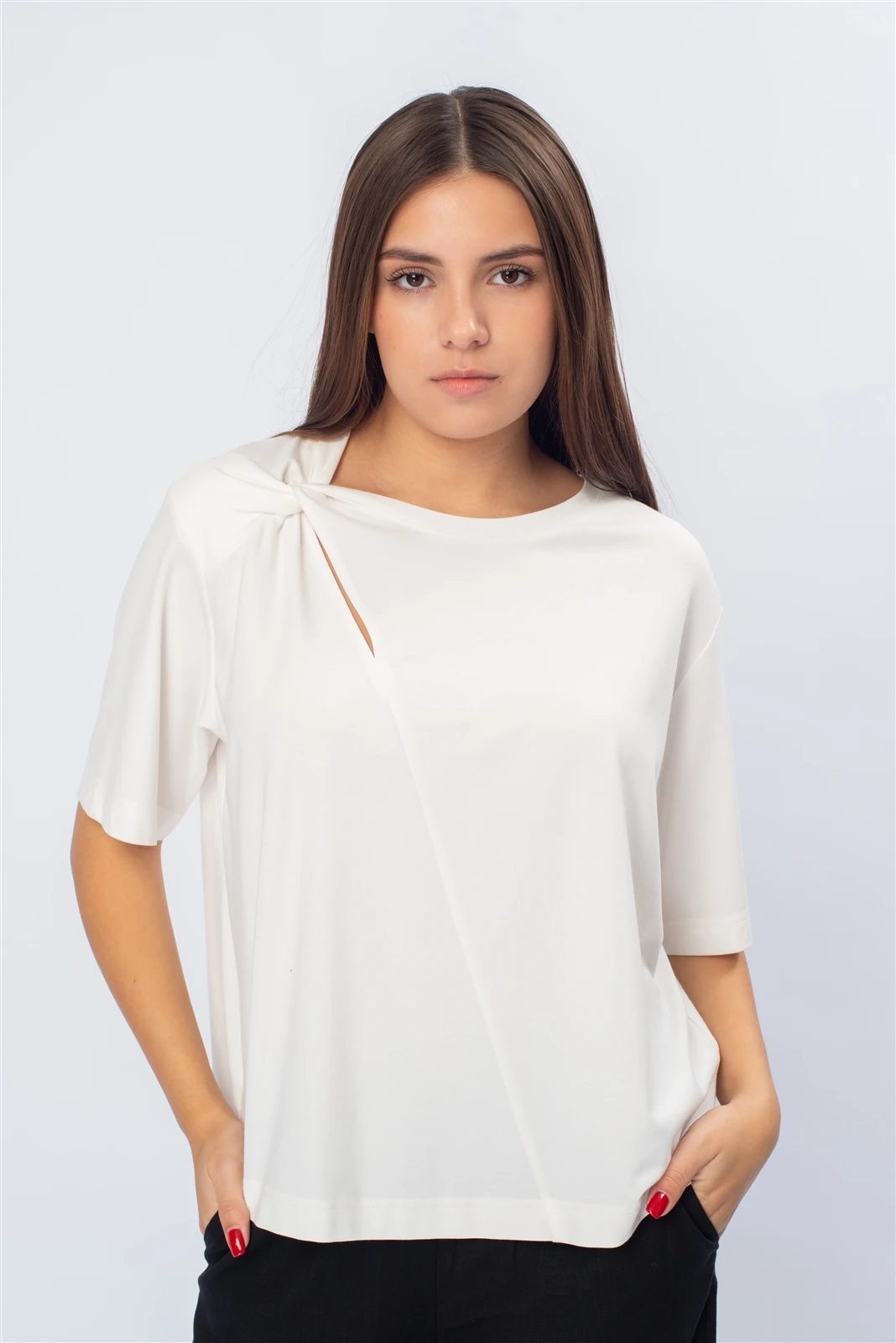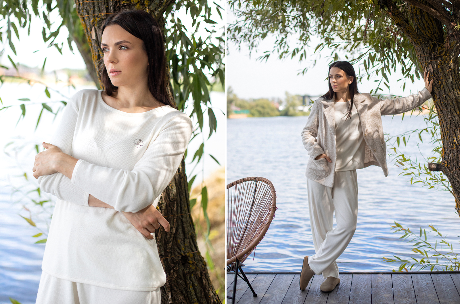 В стилистике изделий преобладает ненавязчивый спокойный дизайн, что позволяет легко менять настроение изделий с помощью аксессуаров и украшений. Цветовая гамма – сдержанная, с преобладанием актуальных расцветок сезона, адаптированных под офисные и городские требования.